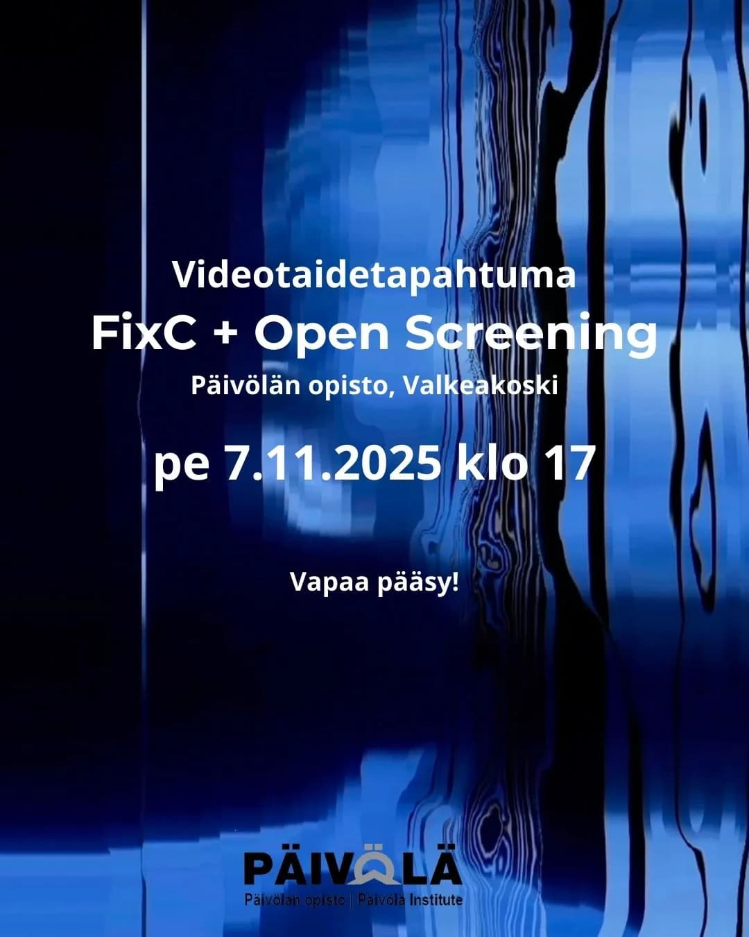Tilaisuuden järjestää Päivölän opiston Kuvataidelinja yhteistyössä kulttuuriyhdistys FixC:n kanssa.