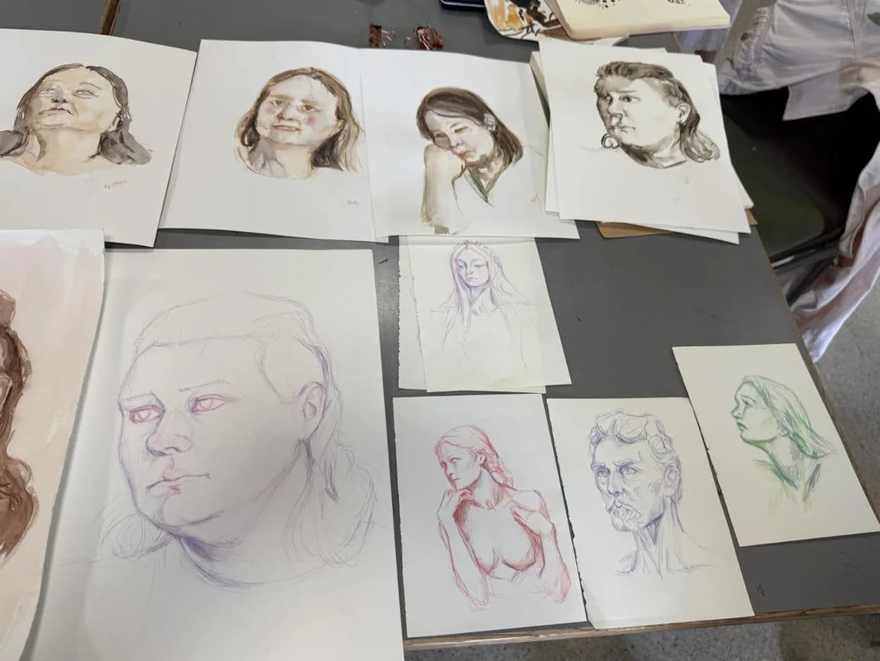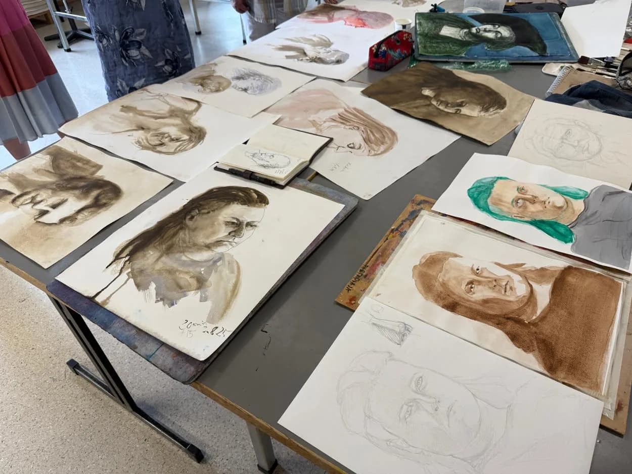 Muotokuvakurssilla yhdistetään piirustusta ja akvarellimaalausta, harjoitellaan anatomiaa sekä nopein croquispiirustuksin että havaintopiirustusta pitkää istuntoa työstämällä. Kurssilla piirretään ammattimallia, ja opiskelijat piirtävät myös toisiaan vuorotellen. Harjoittelemme myös ihmisen ihon sävyjä eri väriharmonioilla.