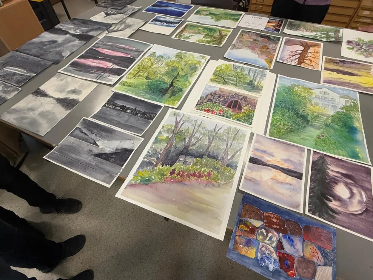 Kurssilla aiheena metsän elämää ja metsän rytmi, eri maalaustekniikat